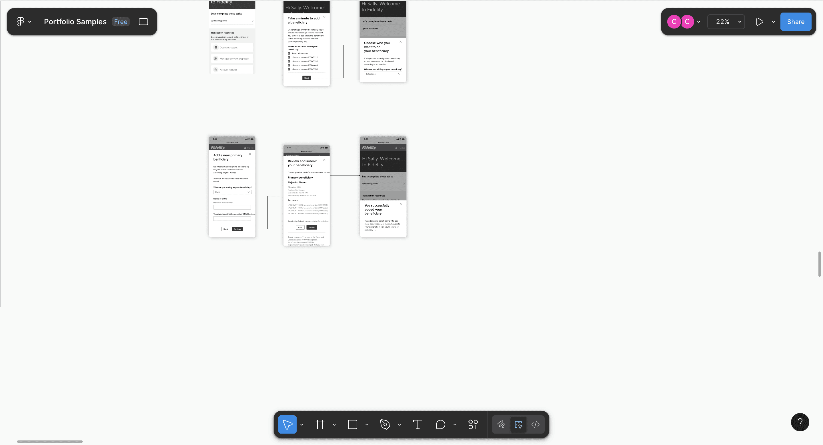 With a few taps, Sally adds beneficiaries to her accounts